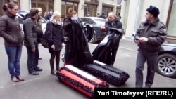 Ҳарамгули Қодир, хабарнигори "Озодӣ" (аз тарафи рост) бо як мубталои бемории СПИД сӯҳбат мекунад...