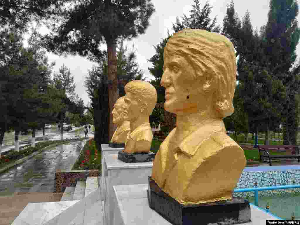 Мақомоти Хатлон бо як қарори баҳсбарангез нимпайкараҳои зарҳалии се фармондеҳи замони ҷанги дохилӣ - Сангак Сафаров, Файзалӣ Саидов ва Лангарӣ Лангариевро ба феҳристи ёдгориҳои таърихии ин вилоят ворид кардаанд. Нимпайкараҳоро дар яке аз майдонҳои шаҳри Бохтар (Қӯрғонтеппаи пешин) гузоштаанд.