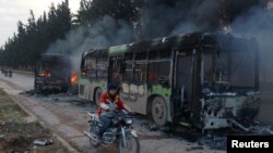 Тибқи гузоришҳо аз Сурия, мухолифони ҳукумати Башор Асад ба автобусҳое, ки қарор буд сокинони ду деҳаи шианишинро дар вилояти Адлаб интиқол бидиҳанд, ҳамла карда ва онҳоро ба оташ кашидаанд. Ба гуфтаи созмонҳои фаъоли ҳуқуқи башар, ҳадди ақал 5 автобус, ки қарор буд захмиён ва беморонро аз ду деҳа интиқол бидиҳанд, сӯзонида шудаанд.