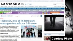 Нашрияи La Stampa, чопи Руми Итолиё, интихоботи раёсатҷумҳурии Тоҷикистонро “пешгӯишавандатарин дар таърихи ин кишвари Осиёи Марказӣ” номидааст. “Касе заррае шубҳа надошт, ки рӯзи нав бо мандати нави президентии Эмомалӣ Раҳмон шурӯъ мешавад,” - навиштааст хабарнигори нашрия ва афзудааст, ки раисиҷумҳури феълӣ Эмомалӣ Раҳмон аз соли 1992 раҳбарии кишварро бар дӯш дорад ва аз рӯи собиқаи раҳбарӣ дар садри сарони Осиёи Марказӣ қарор мегирад, зеро боз 7 соли дигар ба Тоҷикистон сарварӣ хоҳад кард.