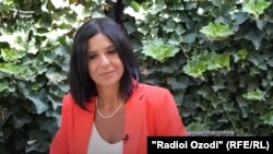 Раҳбари Ҳайати порлумони Иттиҳоди Аврупо барои ҳамкориҳо бо Осиёи Миёна хонум Ҷузеппина Принчи ба саволҳои хабарнигори Радиои Озодӣ Иршод Сулаймонӣ посух медиҳад. Душанбе, 16 сентябр