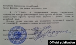 Таҳқиқоти журналистии хабарнигорон Ганҷинаи Ганҷ ва Муҳайё Нозимова дар мавриди арзиши хизматрасонии нотариусҳо дар Тоҷикистон.