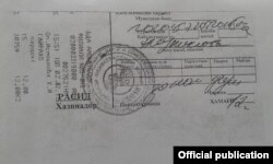 Дар нотариуси ноҳияи Фирдавсии шаҳри Душанбе, тарҷумаи дипломро (дар охири ҳуҷҷат шумораи варақҳо 5 саҳифа дарҷ шудааст) ба маблағи 10 сомонӣ + 2 сомонӣ ҳаққи чопкунанда (бе расид) тасдиқ карданд. (ниг. ба расиди №3)