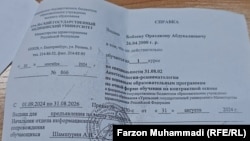 Бар асоси санаде, ки волидайни Ораз Бобоев ба Радиои Озодӣ пешниҳод карданд, ӯ дар бахши "ординатура"-и Донишгоҳи тиббии минтақаи Урали Русия таҳсил мекунад.