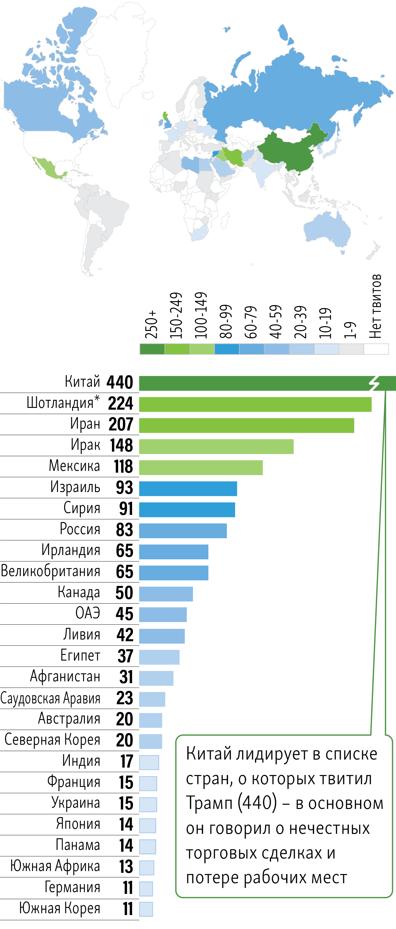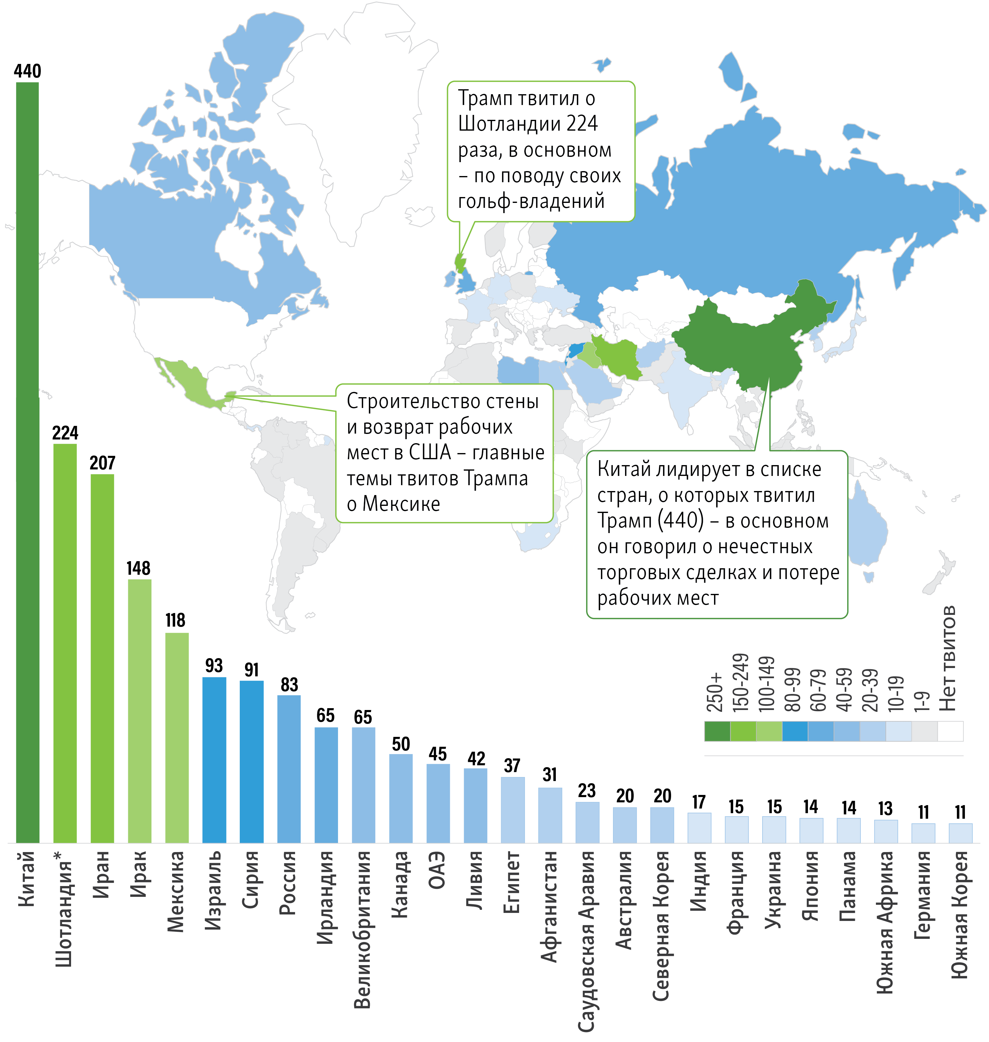 Об этих 26 государствах Дональд Трамп твитил более десятка раз с момента создания своего твиттер-аккаунта в марте 2009 года.